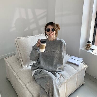 【2枚購入で 2oo円OFF!】2024新作 シンプル スウエット 裏起毛 セットアップ レディース レディースファッション Tシャツ トップス ワイドパンツ 二点セット 大きめサイズ