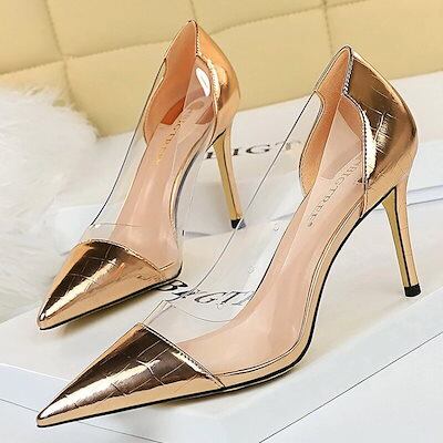 靴クリアヒール女性パンプスファショイン女性靴金属透明ハイヒール女性スティレットセクシーパーティーシュ