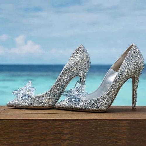 メガ割 ラインストーンハイヒールシンデレラシューズ女性パンプス先のとがったつま先女性クリスタル福袋