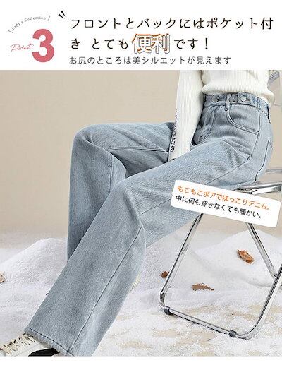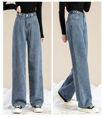 大人気 品質保証裏起毛 デニム デニムパンツ レディース ワイドパンツ ジーンズ ボトムス ストレート 裏ボア 暖かい 秋冬 防寒 カジュアル ハイウエスト 脚長効果 ウエスト調整可能 ゆったり ブ