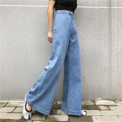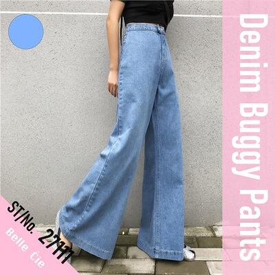 デニムパンツ デニム バギーパンツ レディース 韓国ファッション 脚長効果 ワイドシルエット ロングパンツ