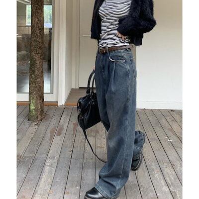 デニムパンツ タックワイドデニムパンツレディース韓国風