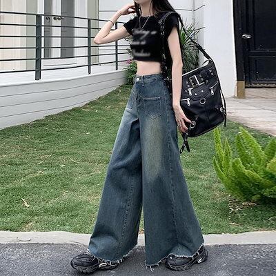 デニムパンツ ワイドデニム レディースフレアパンツ韓国