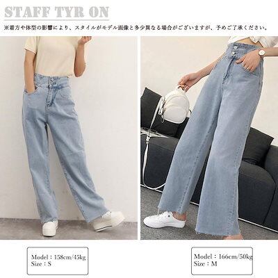 デニムパンツ ハイウエスト デニム ワイドパンツ 切りっぱなし デニム パンツ 春夏 薄手 デニム ストレート ジーパン レディース