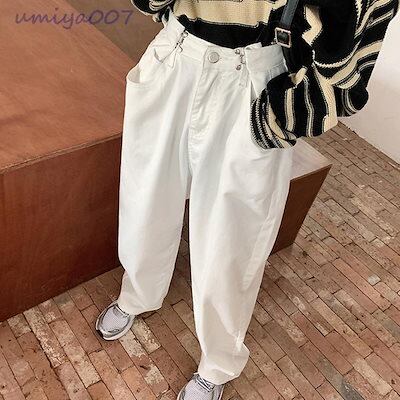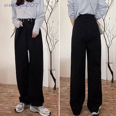 デニムパンツ レディース ワイドパンツ ハイウエスト ボトムス 着やせ ジーンズ ロングパンツ ウエスト調節可能 ゆったり