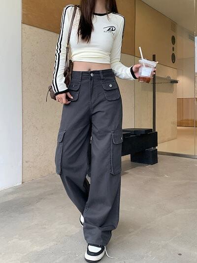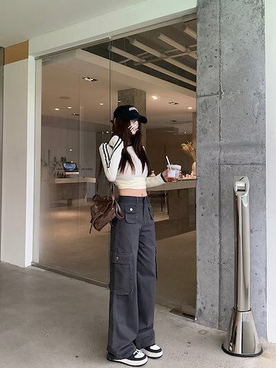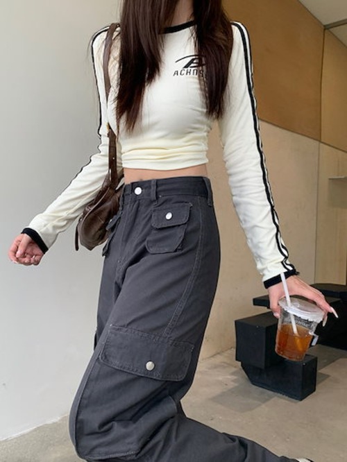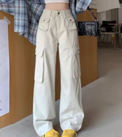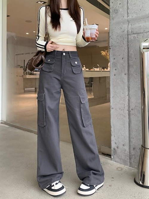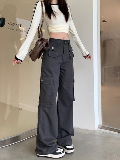 2024秋冬パンツ ロング丈 ワイド ポケット ハイウエスト 美脚効果 脚長効果 細見え 秋 白 おしゃれ かわいい 韓国ファッション レディース お出かけ