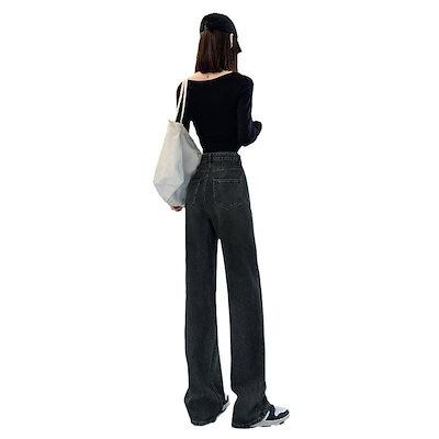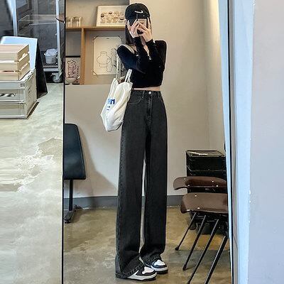ワイドパンツ ブラックグレー 薄い ジーンズ レディース 2024夏秋新作 ハイウエスト ルーズ 細身 ストレート モップパンツ 美脚 韓国