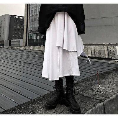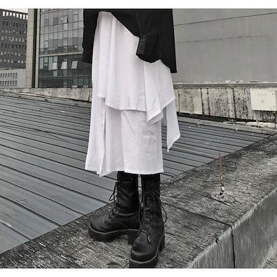 袴パンツ レディース メンズ ワイドパンツ スカート風 韓国 原宿 個性的 モード系 ホワイト