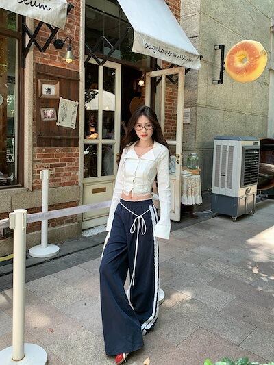 2024パンツ ロング丈 ワイド ストレート ストライプ ウエストゴム ハイウエスト 美脚効果 脚長効果 細見え 秋 おしゃれ かわいい 韓国ファッション レディース お出かけ