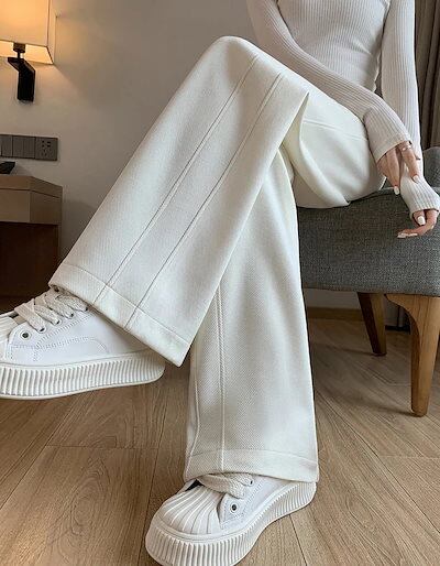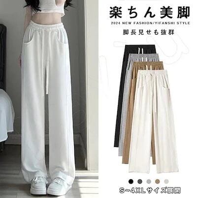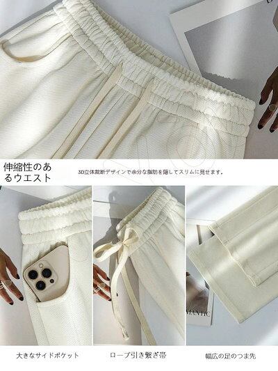 2024春夏新作入荷 ワイドパンツ リブ カジュアル ボトムス 楽ちん ズボン ウエストゴム ロング ゆったり美脚 着痩せ ポケット付き