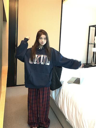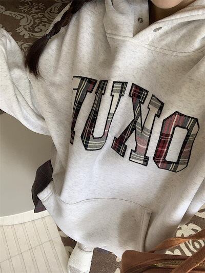 2024秋冬トップス厚手裹起毛韓国風長袖レトロパーカーカジュアルルーズファッション系ゆったり大人っぽかわいいレディースフード付き羽織りサイズきれいめシルエットトレーナー 大学生通学高校