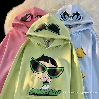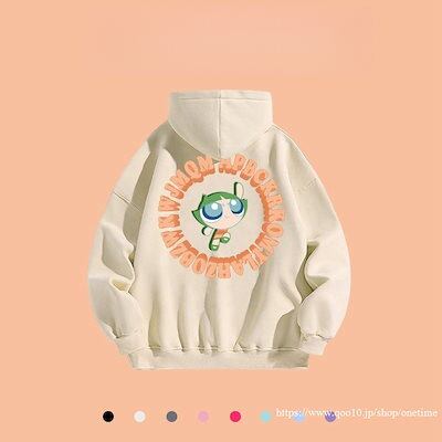 韓国 パワーパフガールズ 可愛い ゆったり トップス カジュアル プリント 男女兼用 ペアルックパーカー/レディースパーカー ルームウェア 長袖パーカージャケット/ア