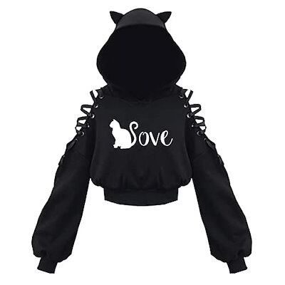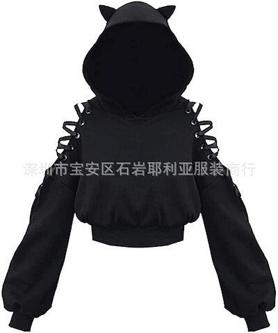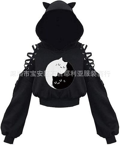 韓国 スウェット ショートバージョン かわいい 猫 ベリーボタン スウェットシャツ トレーナー レディース