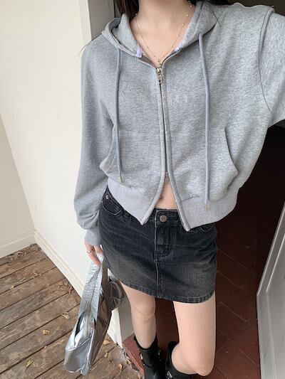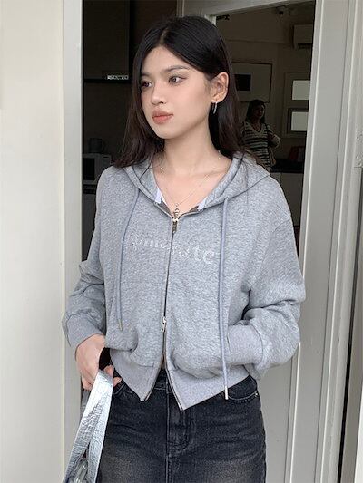 2024秋冬トップスかわいいパーカー フード付き韓国風長袖ゆったり細見え白黒おしゃれレトロチャックシルエット 大人っぽ韓国ダブルサイズファッション系ルーズレディースサイドお出かけ学生通学トラック羽織り