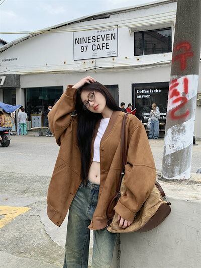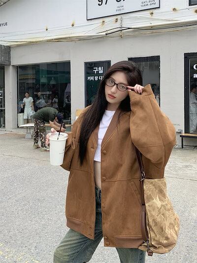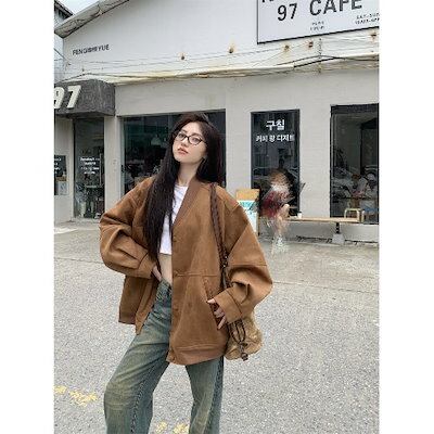 2024秋冬 長袖 ジャケット 暖かい 防寒 かわいい 韓国トップス アウター 羽織り合成レディースフェイクコーデカジュアルシルエットゆったりファッション系サイズ 色っぽ 女っぽきれいめ大人裏丈黑