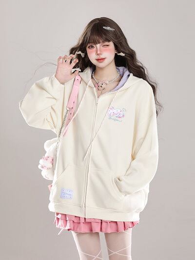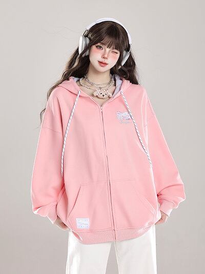 2024 秋冬トップスかわいい パーカー フード付き韓国風 プリント 長袖ゆったり細見え白黒おしゃれレトロシルエット大人っぽ韓国フルサイズファッション系ルーズレディースサイド学生通学トラック羽織り