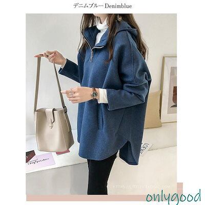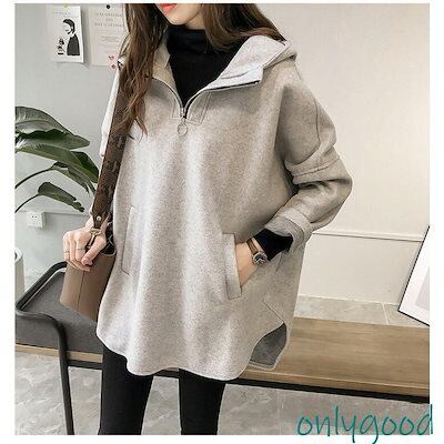 パーカー レディース プルオーバー トレーナー カットソー トップス スウェット おしゃれ 可愛い ロングパーカー 体型カバー カジュアル 秋冬 チュニック コーデ