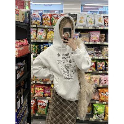 2024秋冬トップス 2type 厚手裹起毛韓国風長袖レトロパーカーカジュアルルーズファッション系ゆったり大人っぽかわいいレディースフード付き羽織りサイズきれいめシルエットトレーナー 大学生通学高校