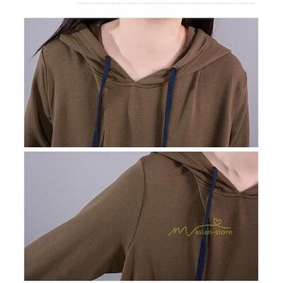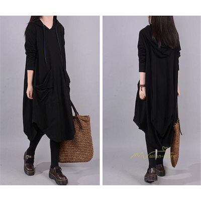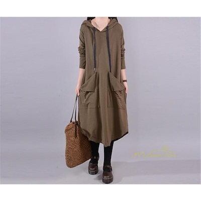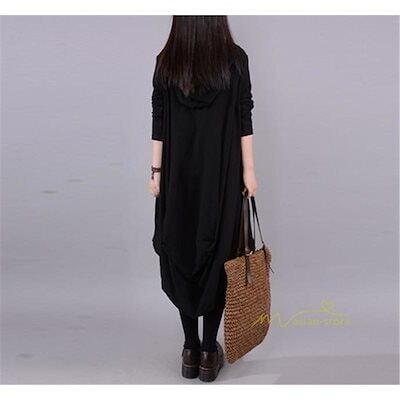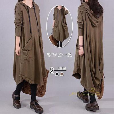 ワンピース レディース 春夏秋 薄手 長袖 ミモレ丈 パーカーワンピース ロングパーカー フード付き 春物 秋服 前後差 デザイン 可愛い 無地