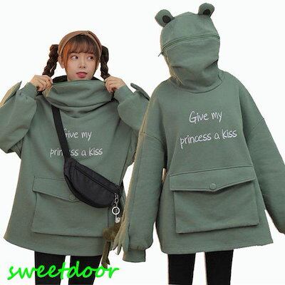 パーカーカエルレディースルームウェア耳付きフード付きトップスゆったりオーバーサイズポケット付きアウターカジュアルかわいいおしゃれ