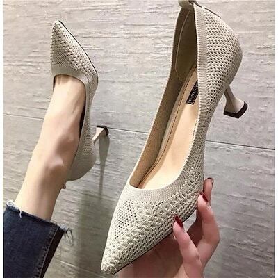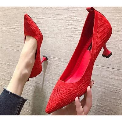 ポインテッドトゥ パンプス レディース ニット メッシュ 通勤 歩きやすい ハイヒール 靴 美脚 二次会スタイルアップ!ヒールパンプス