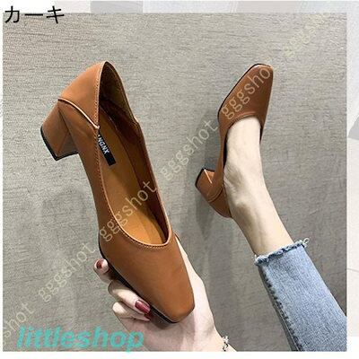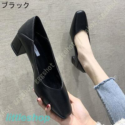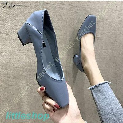 パンプス 痛くない チャンキーヒール 走れる 4.5cmヒール ミドルヒール スクエアトゥ レディース 太めヒール 普段使い 通勤 入学式 甲深 2E 太ヒール