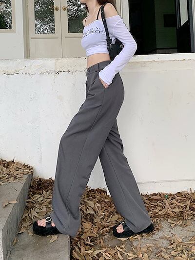 2024 春夏パンツ ロング丈 タック ワイド ストレート ハイウエスト 美脚効果 脚長効果 細見え 夏 茶色 黒 おしゃれ かわいい 韓国ファッション レディース お出かけ