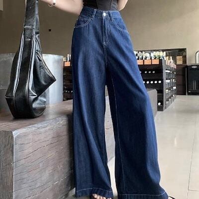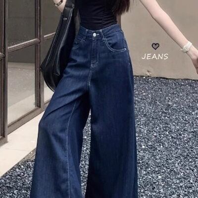2024夏パンツ デニム ジーンズ ロング丈 ワイドレッグ ハイウエスト 美脚効果 脚長効果 細見え 夏 青 おしゃれ かわいい 韓国ファッション レディース お出かけ