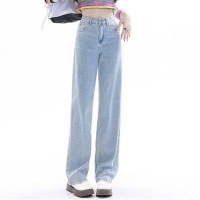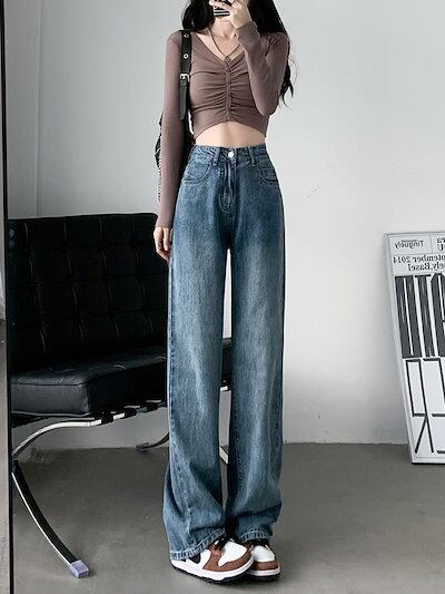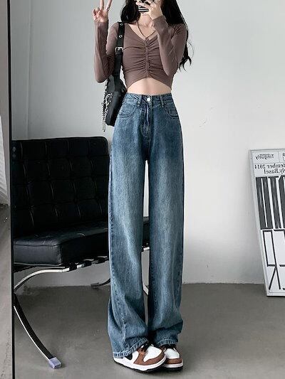 2025 初秋 デニムパンツ パンツ デニム ジーンズ ワイド ストレート ハイウエスト 脚長効果 美脚効果 細見え カジュアル おしゃれ かわいい シンプル レディース お出か 韓国ファッション