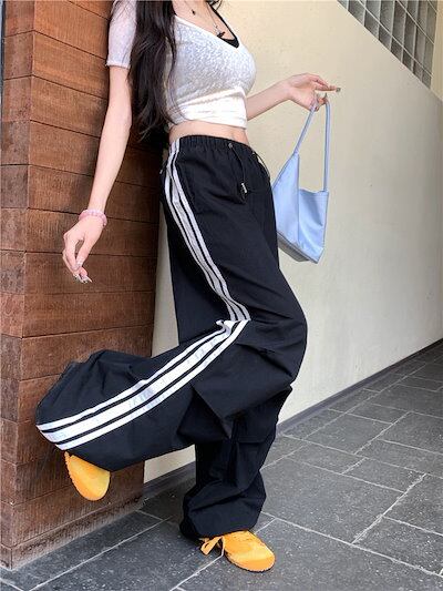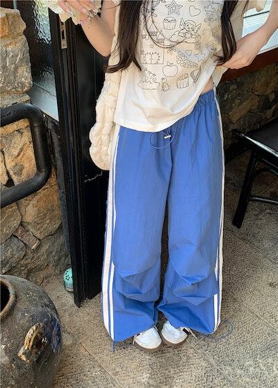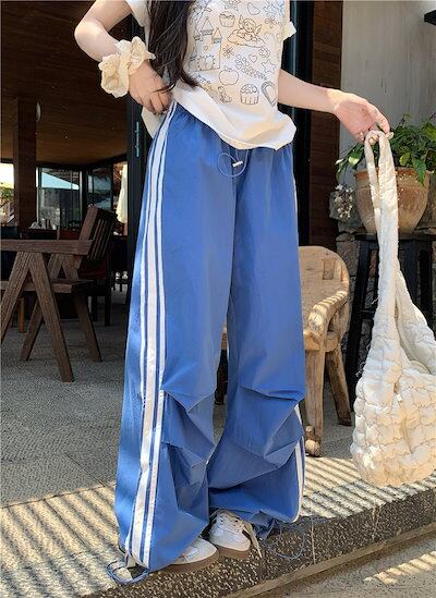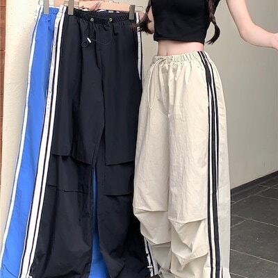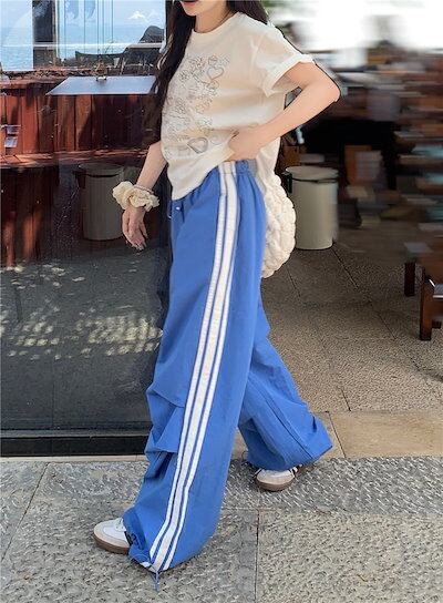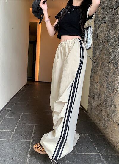 2024 春夏パンツ ロング丈 ワイド ストレート ストライプ ウエストゴム ハイウエスト 美脚効果 脚長効果 細見え 夏 おしゃれ かわいい 韓国ファッション レディース お出かけ
