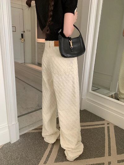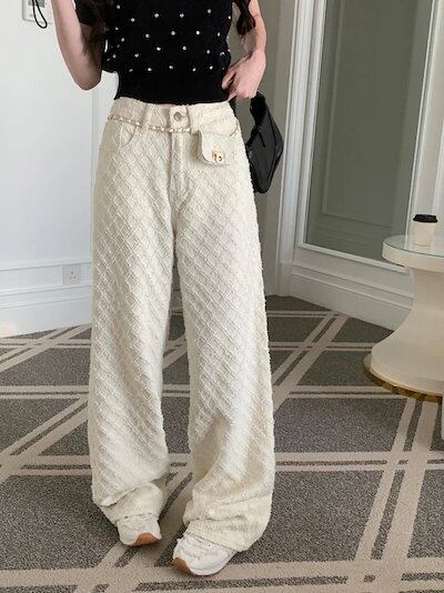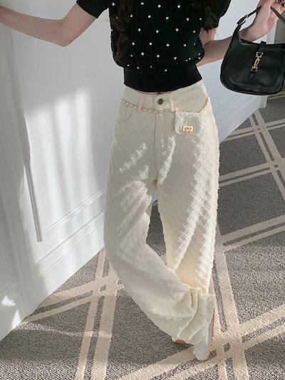 2024 春夏パンツ デニム ジーンズ ワイド ストレート ハイウエスト 脚長効果 美脚効果 細見え 春 白 ホワイト カジュアル おしゃれ かわいい シンプル 韓国ファッション レディース お出かけ
