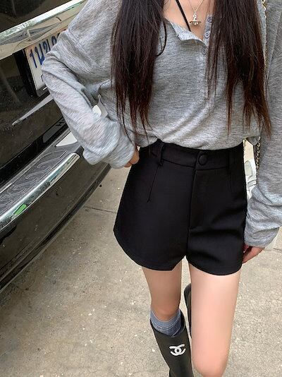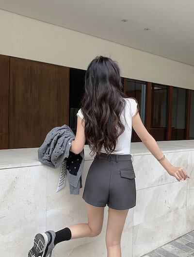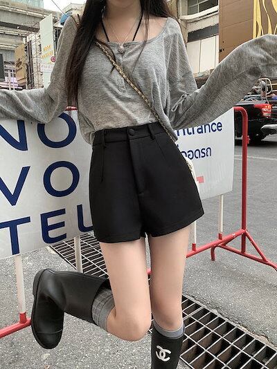 2024 春夏パンツ ショート丈 ハイウエスト 脚長効果 美脚効果 細見え 夏 黒 かわいい カジュアル 韓国ファッション レディース お出かけ