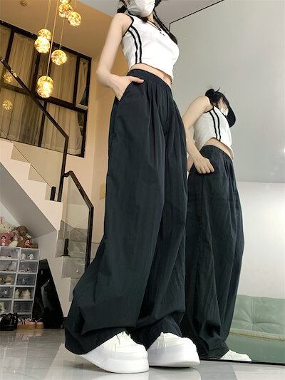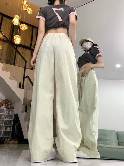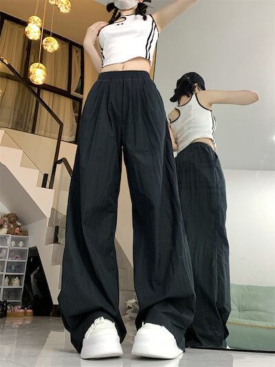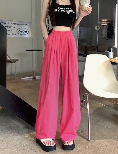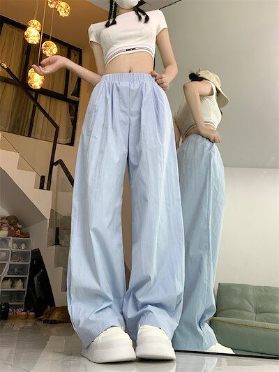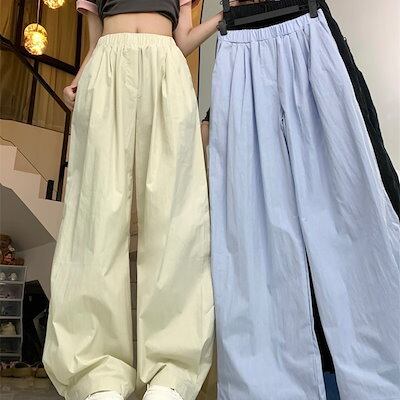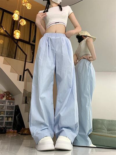 2024春夏パンツ ロング丈 ワイド ストレート ウエストゴム ハイウエスト 美脚効果 脚長効果 細見え 夏 白 黒 青 韓国ファッション レディース かわいい おしゃれ カジュアル お出かけ
