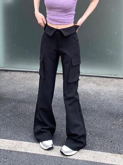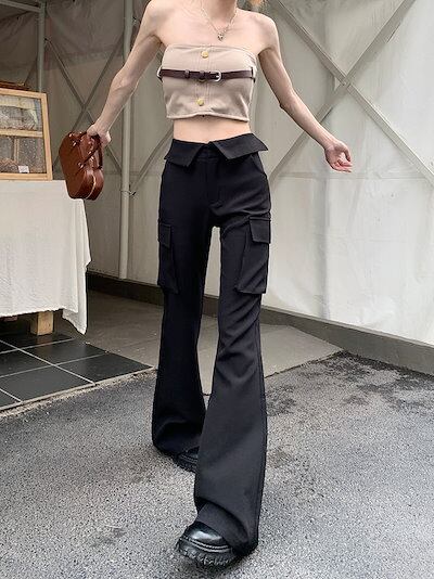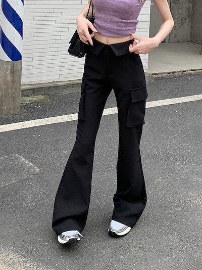 2024春夏パンツ ワイド ストレート ハイウエスト 脚長効果 美脚効果 細見え ポケット 春 黒 カジュアル おしゃれ かわいい 韓国ファッション レディース お出かけ