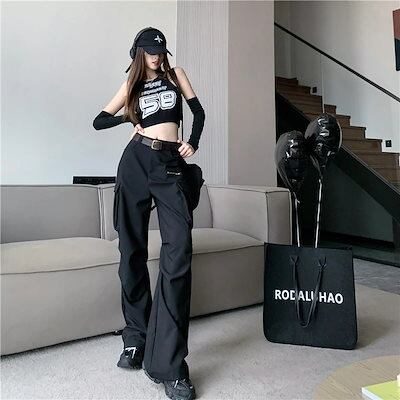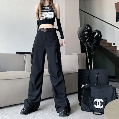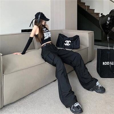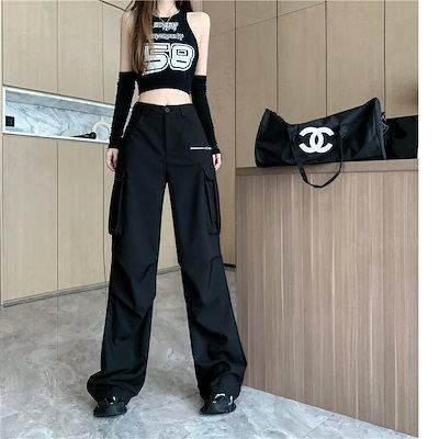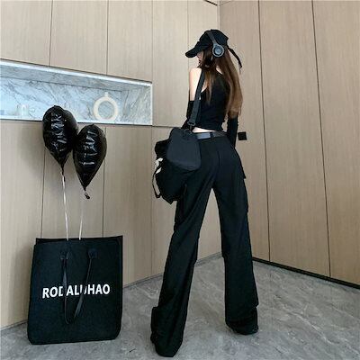 2024春夏 ダボっと可愛い ボトムス カーゴパンツ ロングパンツ ルーズ パンツ ボトム ズボン ルーズ メンズライク トレンド シンプル カジュアル ファッションズボン ブラック ダボかわ