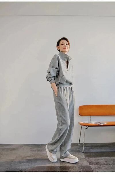 セットアップ 韓国ファッション 2024新作 運動セット涼しく楽ちんセット人気新作スウェットセットアップレディース春服ファッション長袖tシャツカジュアルワイドパンツ上下二点可愛い立ち襟