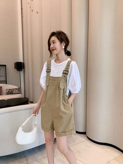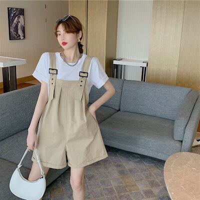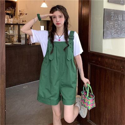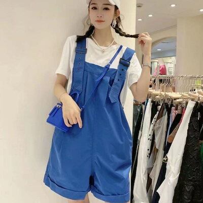 韓国ファッション サロペット サマー かわいい レディース オーバーオール ファッション 純色 ワイド 半ズボン 春服