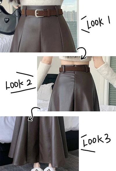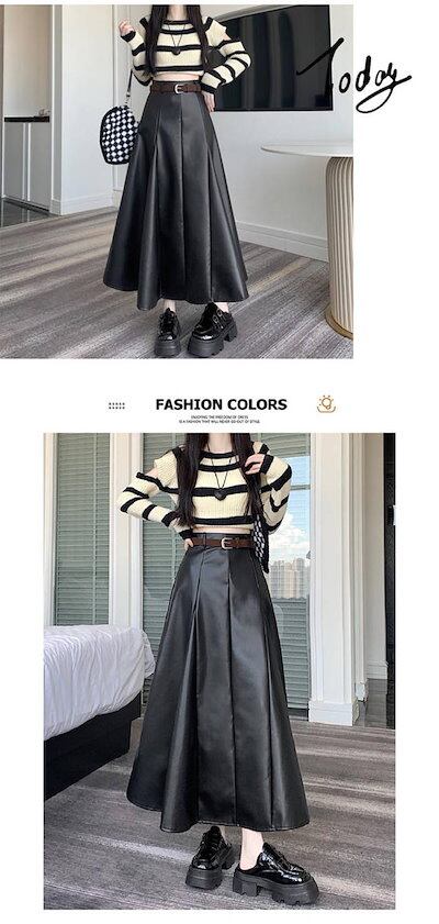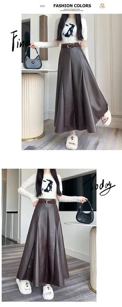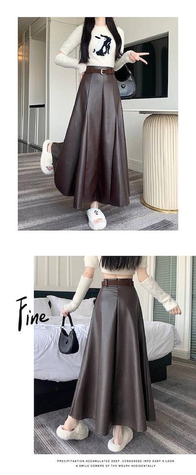 ロングスカート PUスカート Aライン エコレザー マキシスカート フレアスカート ロング丈 マキシ丈 レディース ボトムス 春服 秋服 ハイウエスト 着痩せ 通勤 カジュアル 女性らしさ おしゃれ