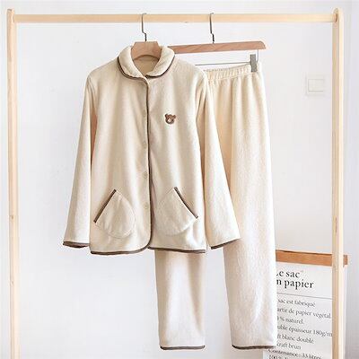 ベロア ルームウェア 冬 パジャマ レディース 長袖 部屋着 セットアップ 2点セット 寝間着 春 秋 冬 寝巻き 上下セット 前開き ナイトウェア 熊柄 大きいサイズ ふわふわ もこもこ ロングパン