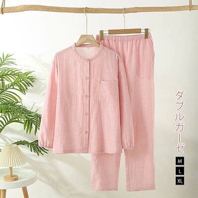 ガーゼ パジャマ レディース ルームウェア パンツ 春 秋 ガーゼコットン 春秋 長袖 ダブルガーゼ 2重ガーゼ 無地 綿 部屋着 セットアップ 2点セット ナイト 寝間着 寝巻き 上下セット 前開き