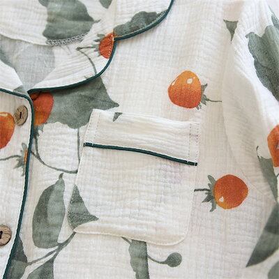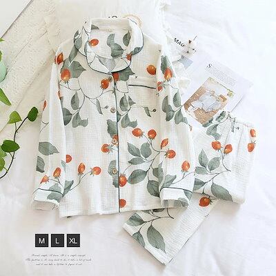 ガーゼ パジャマ レディース ルームウェア パンツ 総柄 春 秋 ガーゼコットン キーネック フリル チェック 春秋 長袖 綿 部屋着 セットアップ 2点セット ナイト 寝間着 寝巻き 上下セット 前