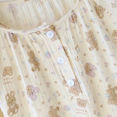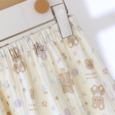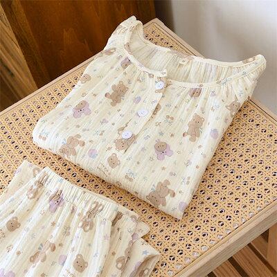 ガーゼパジャマ レディース ルームウェア パンツ 総柄 可愛い 春 秋 ガーゼコットン 春秋 長袖 ダブルガーゼ 2重ガーゼ 綿 部屋着 セットアップ 2点セット ナイト 綿100% 寝間着 寝巻き