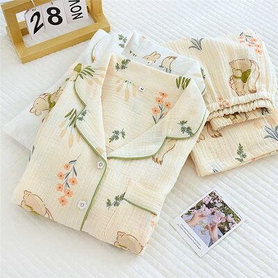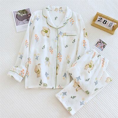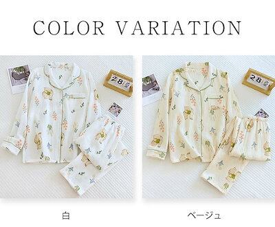 花柄 ガーゼ パジャマ レディース ルームウェア 長袖 部屋着 セットアップ 2点セット ガーゼ 綿100% コットン 大人 寝巻き ナイトウェア ゆったり 上下セット 春 秋 冬 ウエストゴム 上品