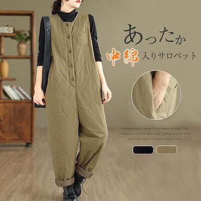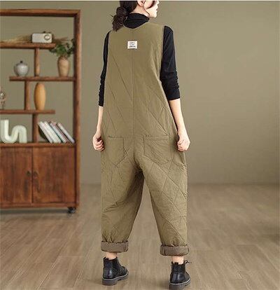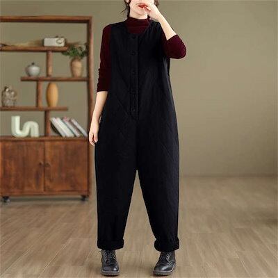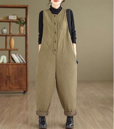 中綿入りサロペット防寒 つなぎ レディース おしゃれ オールインワン ビッグシルエット オーバーサイズ カバーオール ワイドパンツ 作業服 作業着 オーバーオール 一体服 ノースリーブ 春秋冬 体型カ