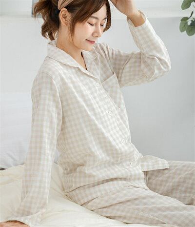 ガーゼ パジャマ レディース ルームウェア 長袖 部屋着 セットアップ 2点セット ガーゼ チェック コットン 大人 寝巻き ナイトウェア ゆったり 上下セット 春 秋 ウエストゴム 上品 快適 大き