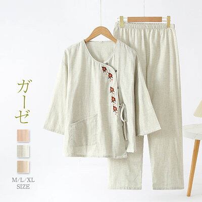 パジャマ レディース ルームウェア パンツ 秋 冬 コットン 刺繍 花柄 リポン パジャマ レディース 春 秋冬 綿 前開き 9分袖 2点セット ナイト 寝間着 寝巻き 上下セット 前開き 快適 大人