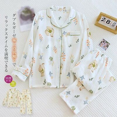 花柄 ガーゼ パジャマ レディース ルームウェア 長袖 部屋着 セットアップ 2点セット ガーゼ コットン 大人 寝巻き ナイトウェア ゆったり 上下セット 春 秋 冬 ウエストゴム 上品 快適 大き