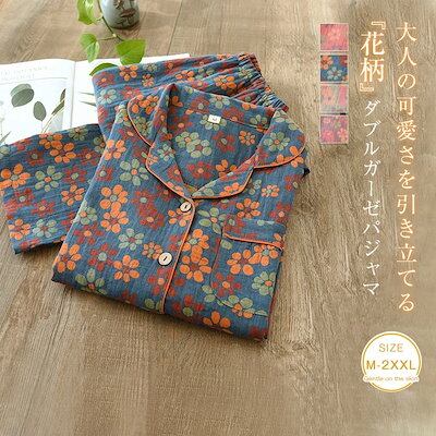 ダブルガーゼ パジャマ ルームウェア レディース 花柄 大人可愛い 長袖 部屋着 セットアップ 2点セット ガーゼ コットン 大人 寝巻き ナイトウェア ゆったり 上下セット 春 秋 冬 ウエストゴム