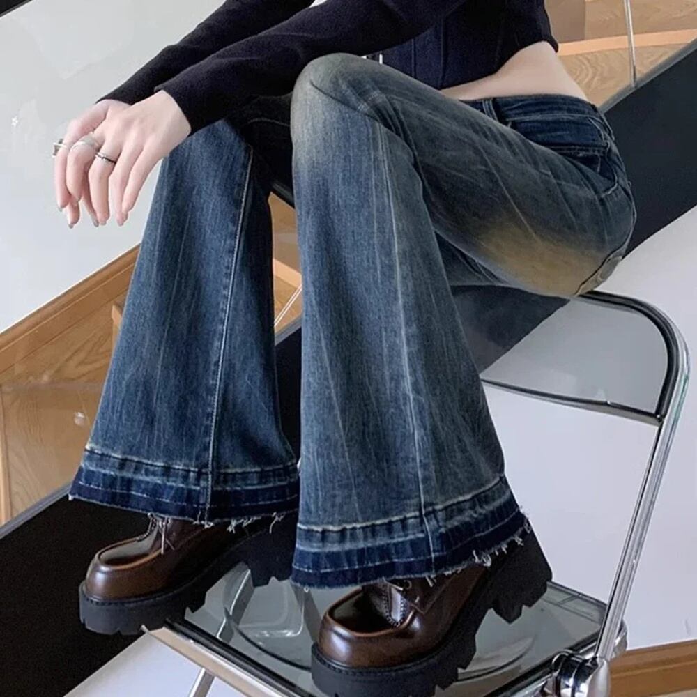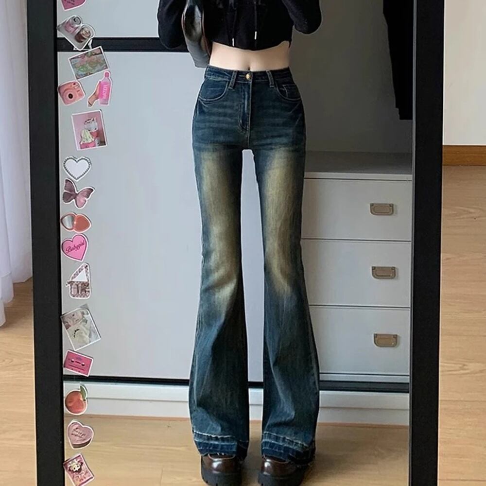 レディースヴィンテージハイウエストジーンズ,ベルバギージーンズ,レディースファッションフレアパンツ,トレンディなブルーのデニムパンツ,y2k 2000s y2k ボトムス T240831173609_01