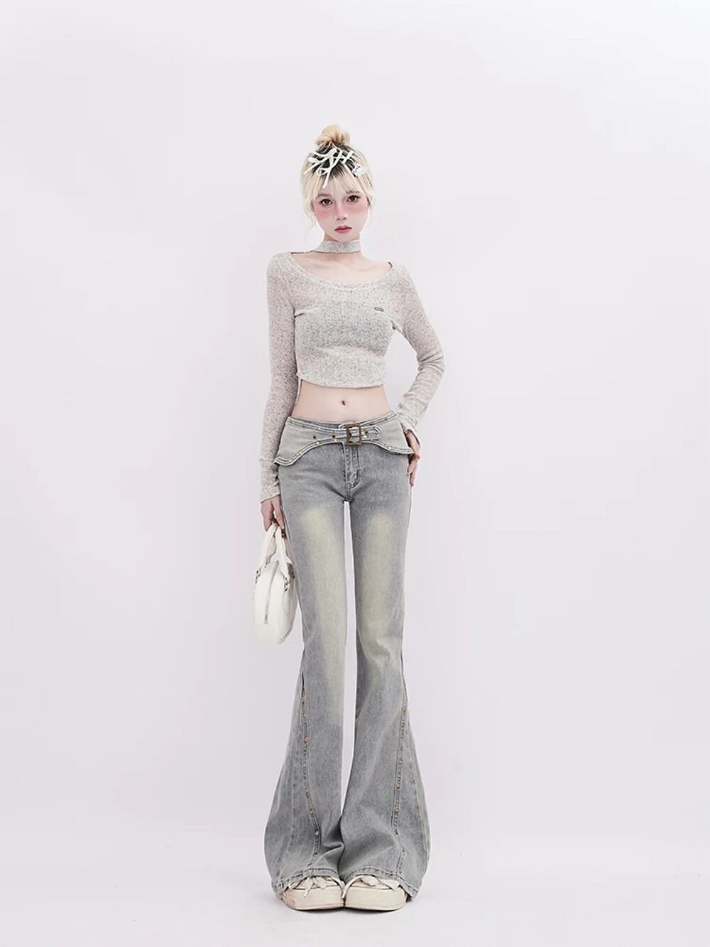 韓国-レディースデニムパンツ,フレアパンツ,グランジスタイル,ヴィンテージ,原宿,トレンディ,ニューコレクション2000s y2k ボトムス T240831173633_01